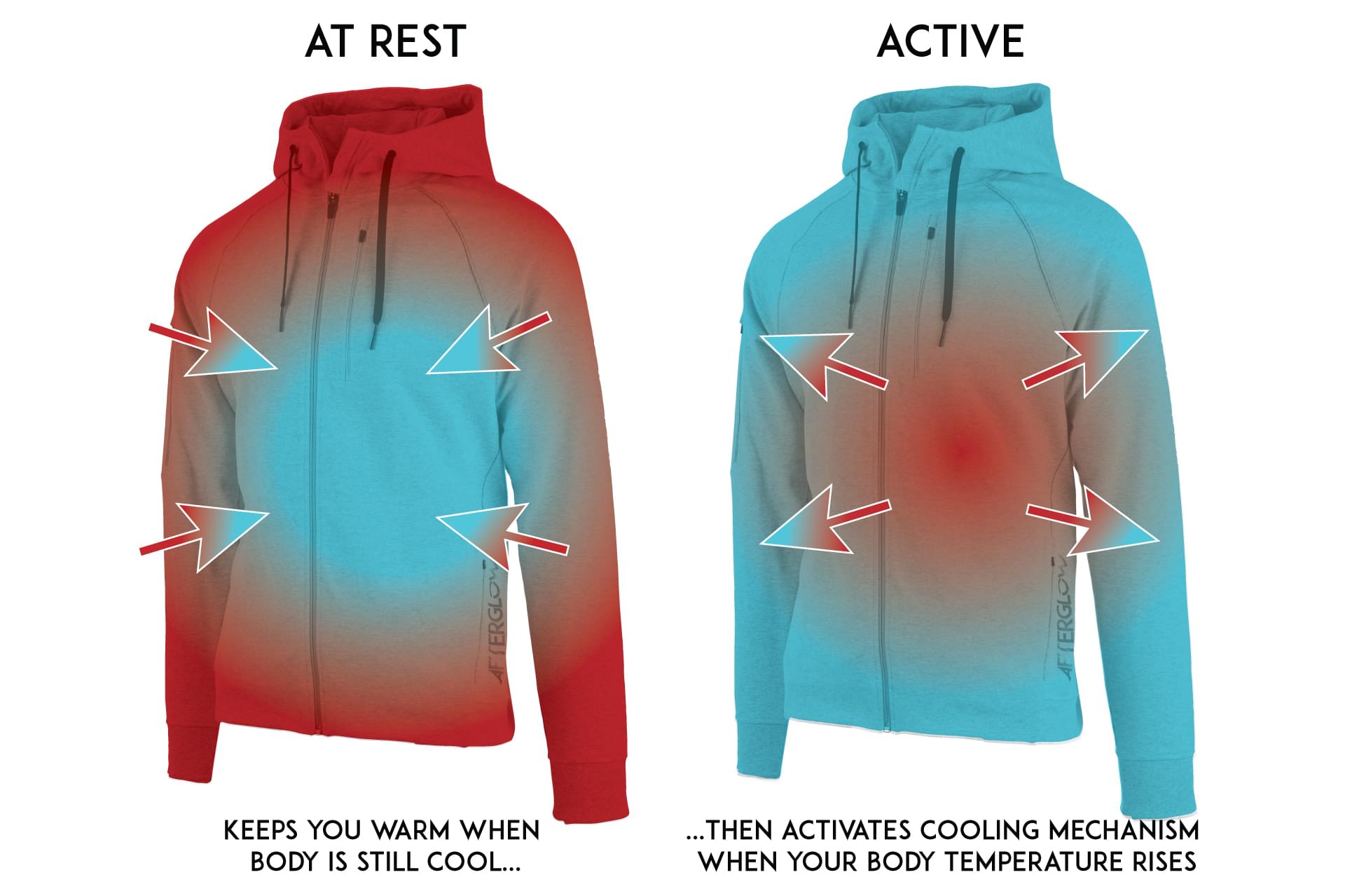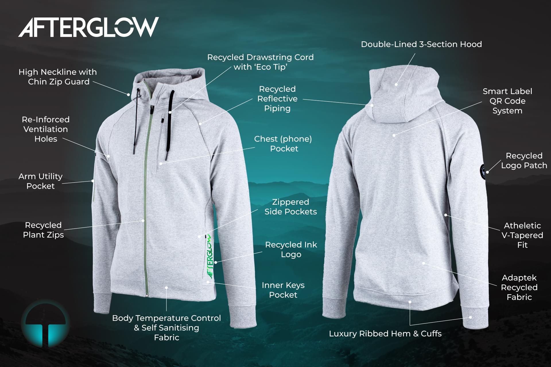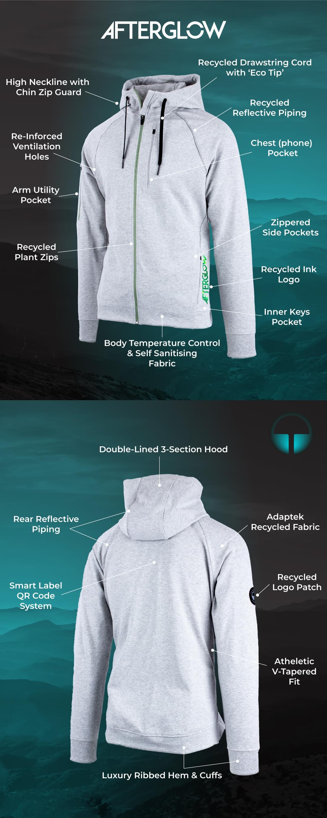 While the AFTERGLOW active jacket concept was designed and prototyped in London, we will produce all the fabric and the jackets with our technologically state of the art, and eco-conscious factory partner nearby in Portugal, lowering our carbon footprint.